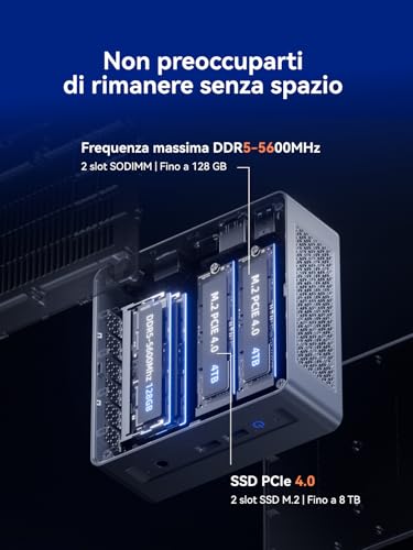 Nell'utilizzo di tutti i giorni, il MINISFORUM AI X1-255 è una scheggia. L'avvio di Windows 11 Pro è quasi istantaneo, le applicazioni si aprono in un lampo e tutto scorre con una fluidità impressionante. La possibilità di installare fino a 96GB di RAM DDR5-5600 e due SSD M.2 PCIe 4.0 (fino a 8TB totali) garantisce una longevità e una capacità di espansione notevoli.