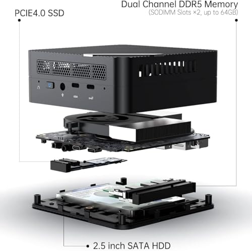 La vera magia, però, si trova nella dotazione di porte. Sul retro, spicca una porta USB4 da 40 Gbps, una caratteristica raramente vista in questa fascia di mercato. Questa singola porta non solo permette trasferimenti dati fulminei, ma supporta anche l'uscita video e l'alimentazione, aprendo scenari d'uso estremamente versatili, come il collegamento di una GPU esterna (eGPU) per trasformare il piccolo PC in una vera e propria macchina da gioco. A completare il quadro ci sono una porta HDMI 2.1, una DisplayPort 1.4, una porta Ethernet da 2.5G e connettività Wi-Fi 6E, garantendo una connettività a prova di futuro.