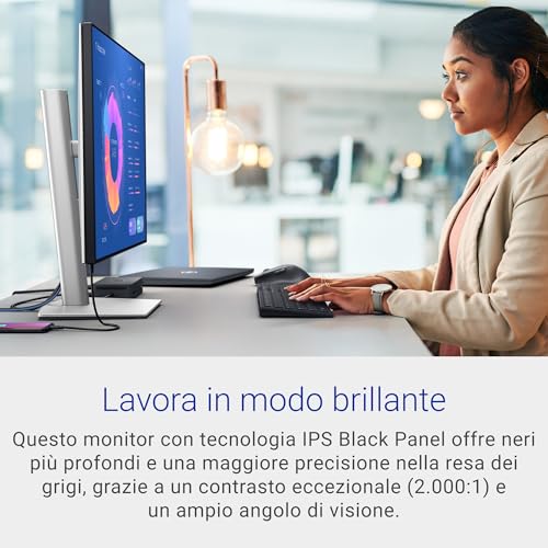I modelli da 27 pollici, U2724D e U2724DE, si distinguono per l'adozione della tecnologia del pannello IPS Black. Questa tecnologia offre un rapporto di contrasto di 2000:1, doppio rispetto ai tradizionali pannelli IPS, garantendo neri più profondi e un'immagine complessivamente più incisiva. La resa cromatica è eccellente, con una copertura del 98% dello spazio colore DCI-P3 e del 100% sRGB, e una calibrazione di fabbrica che assicura un Delta E inferiore a 2. Questo li rende strumenti ideali non solo per la produttività generale, ma anche per professionisti della fotografia e del video editing che necessitano di una riproduzione dei colori fedele.