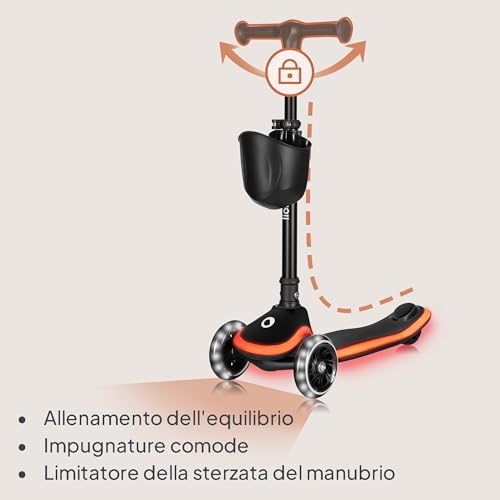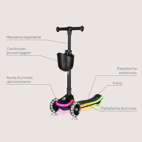 - Luci LED su ruote e pedana che aumentano divertimento e visibilità