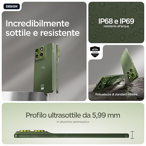 Appena si prende in mano il Motorola Edge 70, la prima sensazione è quasi surreale. Con uno spessore di appena 5,99 millimetri e un peso di soli 159 grammi, sembra quasi di non averlo in tasca. Motorola ha fatto un lavoro eccezionale di ingegnerizzazione, creando un dispositivo che non è solo bello da vedere, ma anche incredibilmente comodo da usare quotidianamente. Nonostante la sua leggerezza, l'Edge 70 è costruito con materiali di pregio come l'alluminio di grado aereonautico per il frame e il Gorilla Glass 7i a protezione del display, garantendo una notevole robustezza. Aggiunge ulteriore tranquillità la certificazione di resistenza secondo lo standard militare MIL-STD-810H.