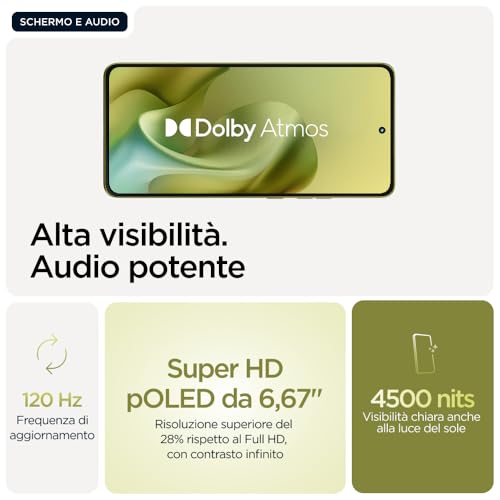 Il pannello frontale è dominato da un ampio display da 6.72 pollici con risoluzione FHD+ (2400x1080 pixel). La caratteristica principale è senza dubbio il refresh rate a 120Hz, che garantisce una fluidità notevole durante la navigazione, lo scrolling sui social e nei giochi compatibili. La tecnologia scelta da Motorola è IPS LCD: i colori sono ben calibrati e la luminosità massima è buona, permettendo una discreta visibilità anche sotto la luce diretta del sole.