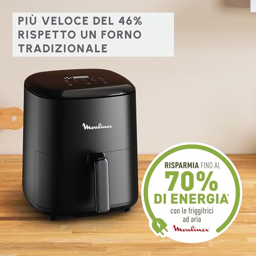 Nonostante le dimensioni ridotte, la Moulinex Easy Fry Compact non rinuncia a un pannello di controllo completo e intuitivo. Il display touchscreen digitale, posizionato sulla parte superiore, è luminoso e reattivo, rendendo la selezione dei programmi un gioco da ragazzi.