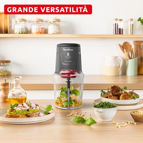 - Moulinex Multi Moulinette 6-in-1 (es. AT7231): È la versione più completa, che grazie a set di lame dedicate e accessori specifici (come quello per le salse) offre una versatilità superiore, permettendo di tritare, sminuzzare, macinare e emulsionare.