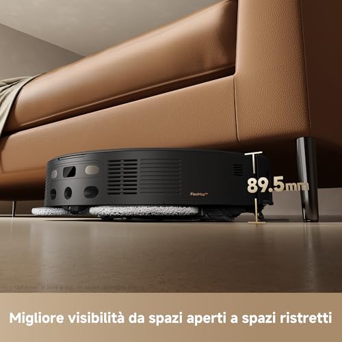 Il sistema di lavaggio con i due mop rotanti è estremamente efficace. Il robot è in grado di riconoscere lo sporco e adattare l'intensità del lavaggio, affrontando con successo anche macchie difficili come quelle di ketchup. La navigazione è precisa e intelligente, grazie al sistema LiDAR e alla telecamera frontale. Il robot mappa la casa con accuratezza, riconosce e divide correttamente le stanze e schiva con agilità ostacoli complessi come giocattoli, cavi o mobili bassi. Una delle caratteristiche più innovative è la torretta LiDAR retrattile, che permette al robot di abbassarsi per passare sotto mobili dove altri non riescono ad arrivare.