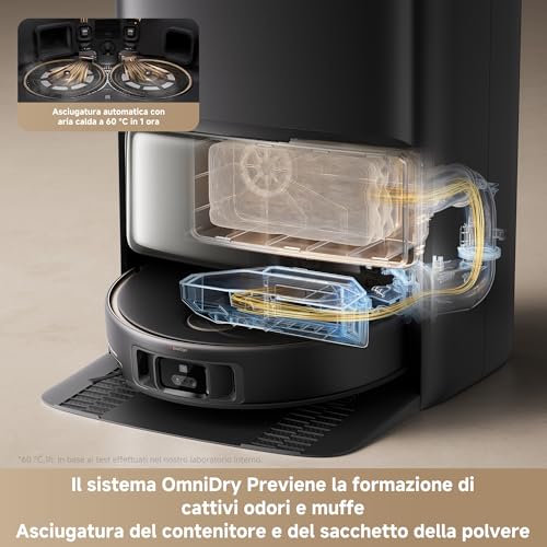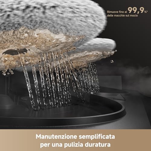 Inoltre, la stazione integra serbatoi separati per l'acqua pulita (4L) e quella sporca (3.5L), oltre a un doppio scomparto per i detergenti, uno per la pulizia standard e uno specifico per chi ha animali domestici, per neutralizzare gli odori. Questa automazione quasi totale elimina quelle piccole incombenze ripetitive che, sommate, fanno la differenza nell'uso quotidiano.