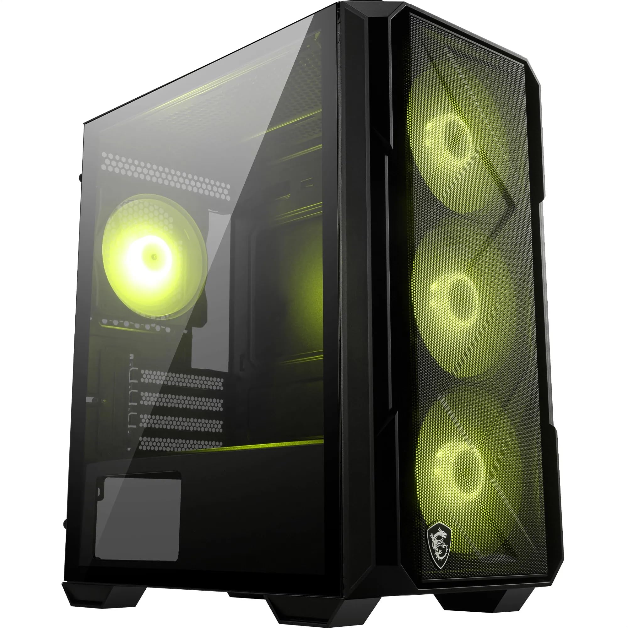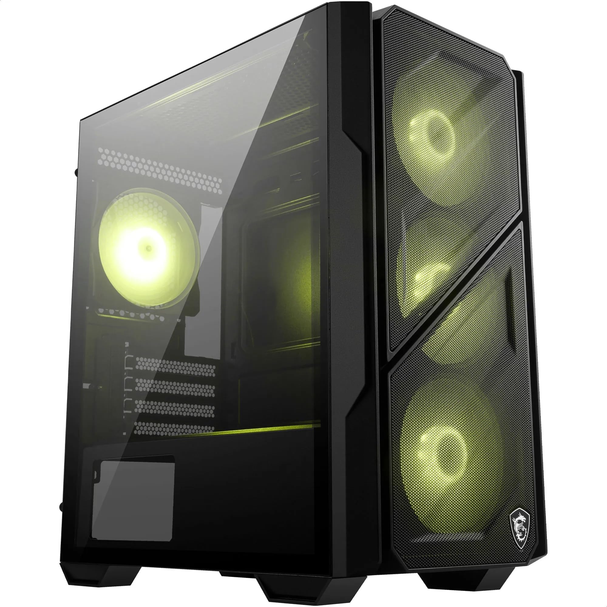 Al primo sguardo, l'MSI MAG FORGE M100R non nasconde la sua vocazione: è un case pensato per il gaming. Le sue linee sono decise, quasi spigolose, e il pannello frontale è dominato da una griglia in mesh dal design geometrico che non solo conferisce un aspetto aggressivo, ma soprattutto lascia intravedere le tre ventole ARGB frontali in azione. A completare l'opera c'è il pannello laterale in vetro temperato, un must-have per chi ama mettere in mostra i propri componenti e creare giochi di luce personalizzati. Disponibile sia in versione nera che bianca, si adatta facilmente a diversi stili di setup.