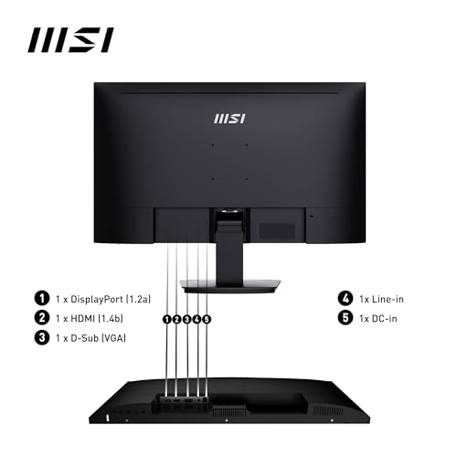 Sul fronte della connettività, l'MSI PRO MP223 offre l'essenziale. È equipaggiato con una porta HDMI 1.4b e una porta D-Sub (VGA). Questa scelta garantisce la compatibilità sia con i PC più moderni sia con quelli più datati. È presente anche un'uscita per le cuffie. La mancanza di una porta DisplayPort potrebbe essere un limite per alcuni, ma per il target di utenza a cui si rivolge, le opzioni disponibili sono generalmente sufficienti.
