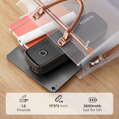 La prima cosa che colpisce della MUNBYN ITP04 è la sua incredibile compattezza. Con un peso di circa 750 grammi, è paragonabile a una bottiglia d'acqua, rendendola una compagna di viaggio ideale. Le sue dimensioni ridotte le permettono di essere trasportata comodamente in uno zaino o in una borsa per laptop senza alcun problema. Il design è moderno e minimalista, disponibile in diverse colorazioni (bianco, nero e rosa) per adattarsi a tutti i gusti.