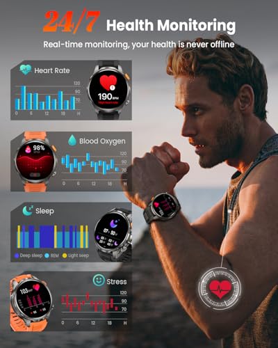 Il NAIXUES Smartwatch Uomo Militare non delude nemmeno sul fronte del monitoraggio della salute e dello sport. Offre un monitoraggio continuo della frequenza cardiaca, della saturazione di ossigeno nel sangue (SpO2) e un'analisi dettagliata della qualità del sonno, suddividendo le fasi di sonno leggero, profondo e REM. I dati raccolti, visualizzabili tramite l'app dedicata, sembrano essere abbastanza precisi e in linea con altri dispositivi della stessa fascia.