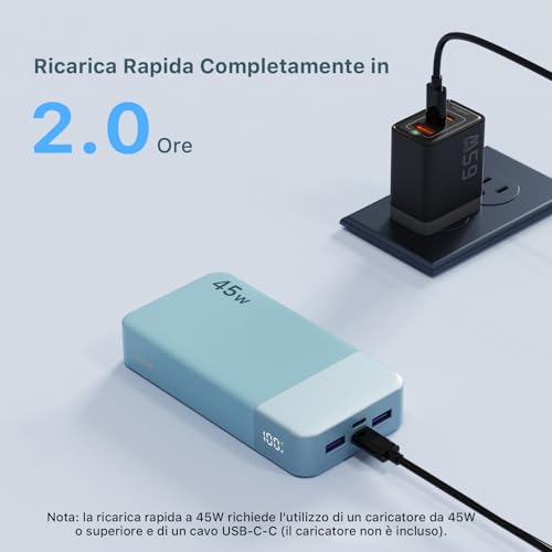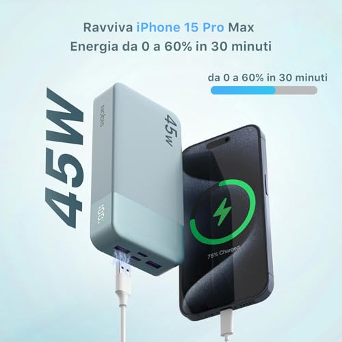 Dopo averlo spremuto per bene, posso dire che il Nobis Power Bank 20000mAh 45W è un prodotto estremamente valido e consigliato. La sua enorme capacità, unita a una velocità di ricarica eccezionale e alla possibilità di alimentare fino a quattro dispositivi, lo rende uno strumento potente e versatile, adatto a un'ampia gamma di utenti. Il display digitale è una chicca funzionale che ne aumenta il valore. Nonostante le dimensioni non proprio contenute e qualche sporadica segnalazione online sulla sua affidabilità, i pro superano di gran lunga i contro. Se cercate un power bank che non vi lasci mai a piedi e che sia in grado di tenere il passo con i vostri dispositivi più esigenti, questa è senza dubbio una delle migliori opzioni da considerare.