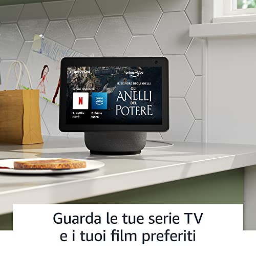 Lo schermo è un pannello touchscreen HD da 10,1 pollici con una risoluzione di 1280 x 800 pixel. Sebbene la risoluzione non sia paragonabile a quella di un tablet di fascia alta, risulta più che adeguata per la distanza di visione tipica di questo dispositivo. I colori sono brillanti e la luminosità si adatta automaticamente all'ambiente circostante. Guardare film e serie TV da piattaforme come Prime Video e Netflix è un'esperienza piacevole, tanto da poter sostituire una piccola TV in cucina o in camera da letto.