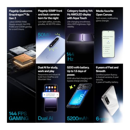 Sotto la scocca, il OnePlus Nord 5 nasconde un cuore da vero top di gamma. È il primo della serie Nord a montare un processore della serie Snapdragon 8, nello specifico il Qualcomm Snapdragon 8s Gen 3 a 4nm. Si tratta di un chipset estremamente potente che, abbinato a 8GB o 12GB di RAM LPDDR5X e memorie UFS 3.1 da 256GB o 512GB (non espandibili), garantisce prestazioni fulminee in ogni contesto.