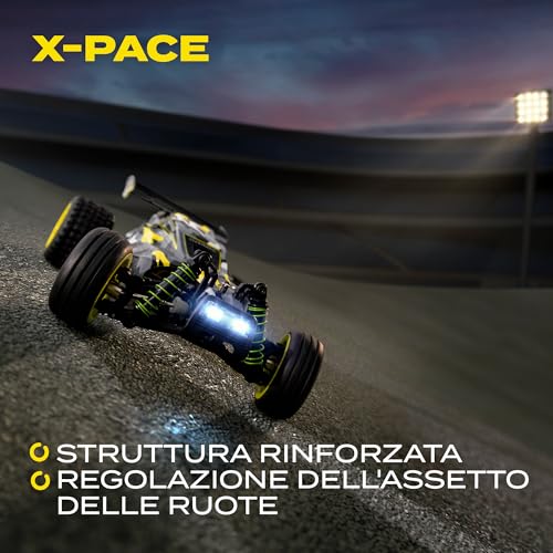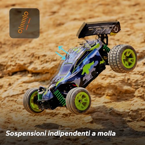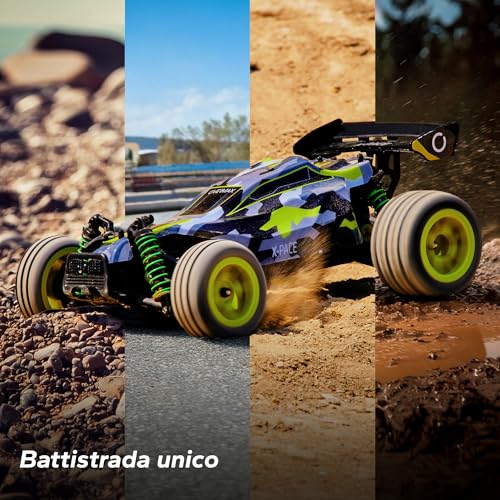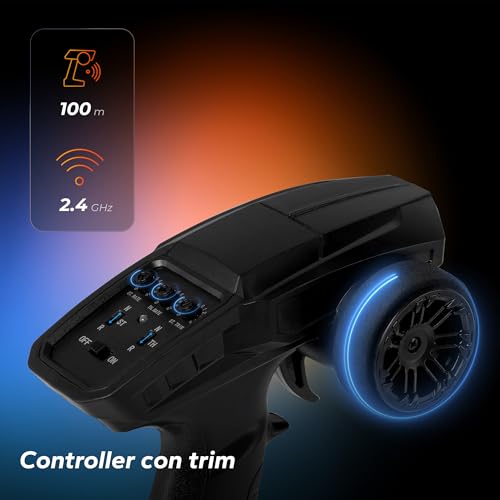 Il radiocomando opera sulla frequenza di 2.4 GHz, uno standard che assicura un'ottima portata, dichiarata fino a 100 metri, e l'assenza di interferenze, permettendo di gareggiare con altri modelli senza problemi. Durante i nostri test, il segnale si è dimostrato stabile e affidabile anche a distanze considerevoli.