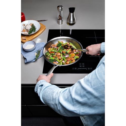 Questo significa che la padella non ha solo un fondo spesso, ma l'intera sua struttura è composta da tre strati metallici fusi insieme: uno strato interno di acciaio inossidabile, un'anima centrale in alluminio e uno strato esterno di acciaio inossidabile magnetico (per la compatibilità con l'induzione). Questa tecnologia, chiamata "corpo triplo", è cruciale perché permette una distribuzione del calore omogenea e rapida su tutta la superficie, non solo sul fondo. Questo si traduce in cotture più uniformi e un controllo della temperatura più preciso.