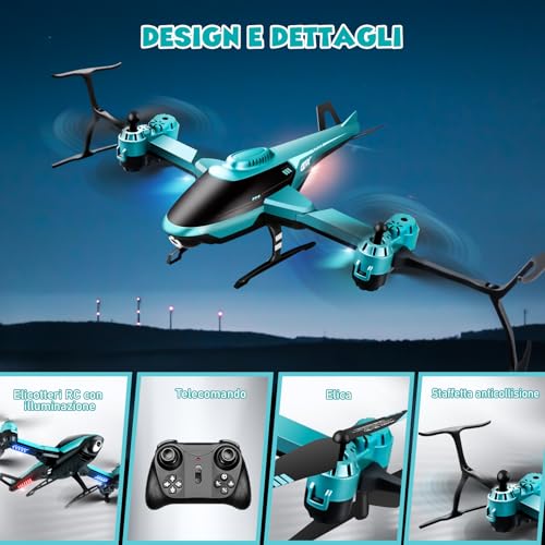 - Design pieghevole e robusto, con luci LED per voli notturni.