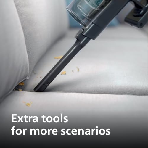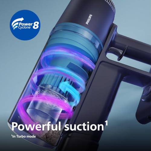 Il modello di punta, il Philips Aspirapolvere Cordless Serie 3000 (in particolare il modello XC3032/01), si presenta come una soluzione completa e performante. La prima cosa che colpisce è la sua leggerezza e maneggevolezza, che rendono le pulizie meno faticose. Il cuore pulsante di questo aspirapolvere è il motore digitale PowerCyclone 8, progettato per generare un flusso d'aria potente (fino a 820 l/min) garantendo un'aspirazione efficace soprattutto sui pavimenti duri, il tutto con un occhio di riguardo ai consumi energetici.