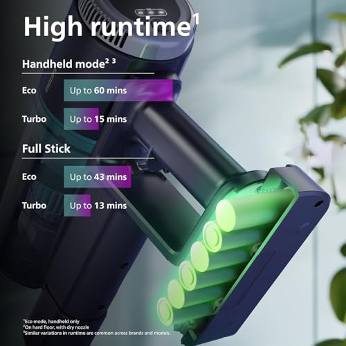 L'autonomia è un altro punto di forza. La batteria agli Ioni di Litio da 25,2 V garantisce fino a 60 minuti di utilizzo in modalità Eco, un tempo più che sufficiente per pulire appartamenti di medie e grandi dimensioni (Philips dichiara oltre 195 m²). Se si necessita di maggiore potenza, la modalità Turbo offre un'aspirazione eccezionale, ma l'autonomia scende drasticamente a circa 15 minuti, ideale per lo sporco più concentrato e difficile. Un grande vantaggio è la batteria sostituibile: acquistandone una di scorta, è possibile raddoppiare l'autonomia e continuare le pulizie senza interruzioni.