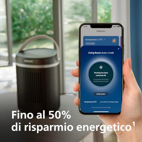 Qui il Philips Serie 3000 CX3120/01 mostra il suo lato più innovativo. La vera chicca è la tecnologia EcoAI, un sistema basato sull'intelligenza artificiale che promette un risparmio energetico fino al 50%. Come funziona? Attraverso l'app Philips Air+, il termoventilatore analizza le tue abitudini, la temperatura della stanza e persino quella esterna per ottimizzare i consumi. In pratica, impara quando hai bisogno di più calore e regola la potenza di conseguenza, evitando sprechi.
