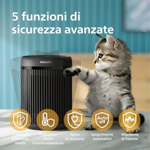 La sicurezza è un altro capitolo in cui Philips non ha lasciato nulla al caso. Il termoventilatore è dotato di ben 5 funzioni di sicurezza avanzate:
