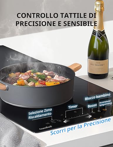 Una delle caratteristiche più interessanti, presente in alcuni modelli come il CIH351D215K1, è la presenza di zone flessibili. Questa tecnologia permette di "unire" due zone di cottura adiacenti per creare un'unica, grande area di riscaldamento, perfetta per pentole di grandi dimensioni, pesciere o teglie rettangolari. Un bel vantaggio in termini di versatilità!