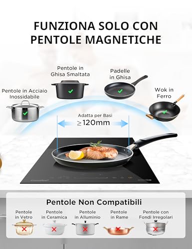Per quanto riguarda l'installazione, è importante sottolineare che questi piani cottura sono da incasso e vengono forniti senza spina, richiedendo un collegamento diretto all'impianto elettrico. È un'operazione che deve essere eseguita da un elettricista qualificato per garantire la massima sicurezza. Un ultimo, ma fondamentale, promemoria: come tutti i piani a induzione, anche i COMFEE' funzionano esclusivamente con pentole dotate di fondo magnetico. Potete verificare facilmente la compatibilità delle vostre pentole con una semplice calamita.