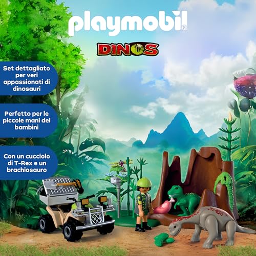 Il set PLAYMOBIL Dinos 71523 Campo Base ci trasporta direttamente in un'era dominata da creature maestose e misteriose. Appena aperta la confezione, ci si immerge in uno scenario avventuroso, dove due intrepidi ricercatori sono pronti a studiare da vicino i giganti del passato. Questo set non è un semplice giocattolo, ma un vero e proprio portale per l'immaginazione, pensato per bambini dai 4 anni in su, che potranno creare infinite storie di esplorazione e scoperta.