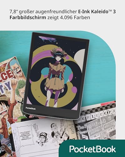Il vero cuore di questo dispositivo è, senza dubbio, il suo schermo. Il Pocketbook InkPad Color 3 monta un display di ultima generazione E-Ink Kaleido 3 da 7,8 pollici. Questa tecnologia rappresenta un passo avanti significativo per la lettura a colori su schermi e-paper. La risoluzione è eccellente per i contenuti in bianco e nero, con 300 PPI (pixel per pollice) che garantiscono testi nitidi e definiti come sulla carta stampata.