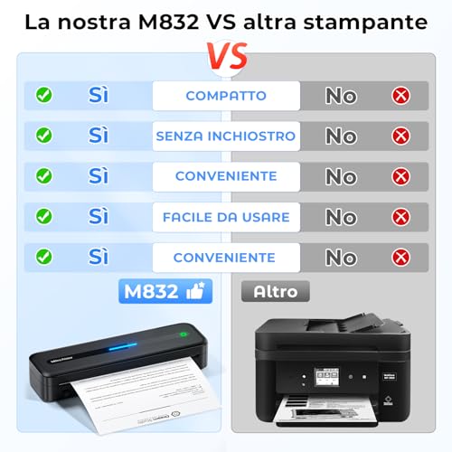 È importante, però, gestire le aspettative: non è una stampante fotografica. Sebbene sia possibile stampare immagini, il risultato sarà inevitabilmente "sgranato" e con un effetto puntinato, tipico della stampa termica monocromatica. Per documenti di testo e etichette, invece, fa egregiamente il suo dovere. Un grande vantaggio è la versatilità dei formati supportati: la M832 può stampare su diversi tipi di carta termica, inclusi rotoli, fogli piegati e fogli singoli in vari formati, fino al formato A4.
