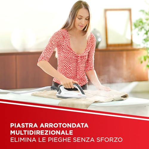 Il La Vaporella XT120C è un concentrato di tecnologia pensato per semplificare la vita. Una delle caratteristiche più interessanti è la piastra 360° Fluid Curve Technology, con bordi arrotondati e un design multidirezionale che permette di stirare agevolmente in ogni direzione, superando ostacoli come bottoni e colletti senza fatica. Inoltre, dispone di ben 6 programmi di stiratura preimpostati (da seta a lino, fino alla modalità Turbo) che regolano automaticamente vapore e temperatura, eliminando il rischio di rovinare i capi.