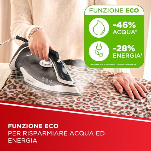 - Polti Vaporella Quick&Slide QS220: È il modello di punta, pensato per chi cerca il massimo della tecnologia e delle prestazioni. La potenza sale a 2400 W, il serbatoio è più capiente (350 ml) e il colpo di vapore raggiunge i 250 g/min, ideale per le pieghe più difficili e per la stiratura in verticale. Il vero punto di forza è la tecnologia: un display digitale e un selettore rotativo sull'impugnatura permettono di scegliere facilmente tra 4 programmi di stiratura. La piastra è in alluminio PRO-STEAM con ben 485 fori e rivestimento in ceramica, per una scorrevolezza e una distribuzione del vapore senza pari.