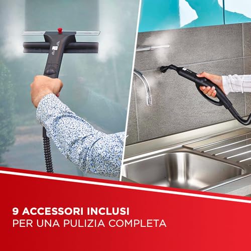 La dotazione di 9 accessori inclusi nella confezione rende il Polti Vaporetto Eco Pro 3.0 estremamente versatile. Grazie alle diverse spazzole, bocchette e panni, è possibile pulire praticamente ogni superficie della casa: pavimenti di ogni tipo, sanitari, vetri, specchi, tappeti, materassi, divani e persino il piano cottura. La potenza del vapore si rivela particolarmente utile per lo sporco ostinato, come quello che si annida nelle fughe delle piastrelle o sui cerchioni dell'auto.