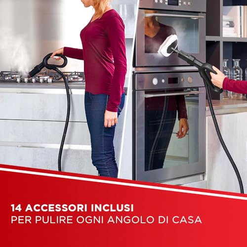 - Grande versatilità con 14 accessori per pulire ogni superficie della casa.