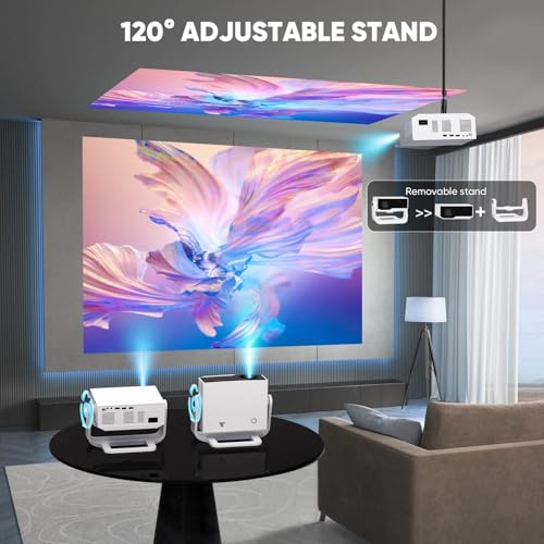 Una delle caratteristiche più interessanti è il supporto integrato regolabile fino a 120°, che permette di orientare la proiezione con grande facilità, persino sul soffitto, senza bisogno di supporti esterni. Questo stand può essere comunque rimosso per montare il proiettore su un treppiede standard, offrendo massima flessibilità di posizionamento.