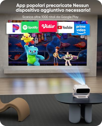 Il vero punto di forza di questo proiettore è il sistema operativo Android 11 integrato. Questo lo trasforma in un dispositivo stand-alone, capace di funzionare senza bisogno di collegare PC, console o chiavette. Una volta connesso al Wi-Fi, si ha accesso a un mondo di applicazioni. App come Netflix, YouTube e Prime Video sono spesso preinstallate, permettendo di avviare lo streaming in pochi istanti.