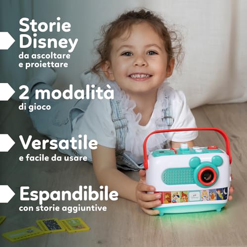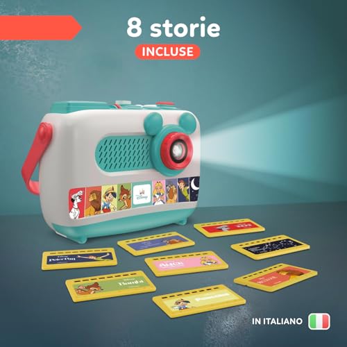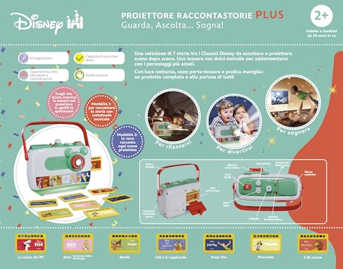 Il set base include una selezione di storie che hanno fatto sognare generazioni: Bambi, Pinocchio, Peter Pan, Lilli e il Vagabondo, Alice nel paese delle meraviglie, La carica dei 101 e Il Re Leone. Ogni storia è riassunta in 8 immagini proiettate in sequenza. La narrazione è semplice e adatta ai più piccoli, catturando i momenti salienti di ogni favola. L'idea di associare l'immagine alla narrazione è estremamente efficace per stimolare l'immaginazione e la capacità di ascolto dei bambini.