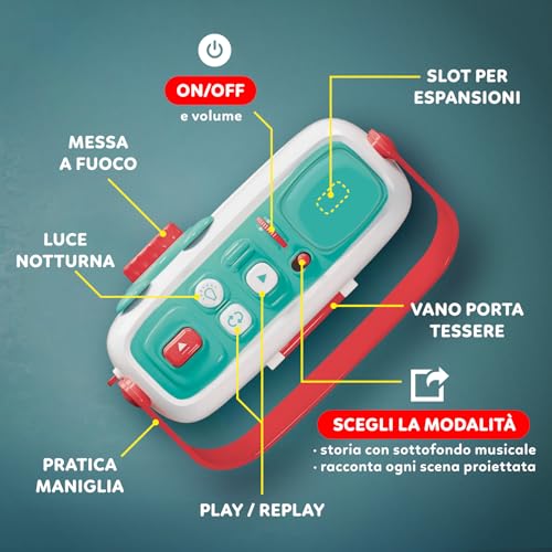 - Qualità Audio e Video: L'audio è chiaro e il volume è adeguato, senza mai risultare fastidioso. La qualità delle immagini proiettate è più che sufficiente per l'uso a cui è destinato. Non aspettatevi la definizione di un proiettore home cinema, ma i colori sono vivaci e i disegni ben riconoscibili.
