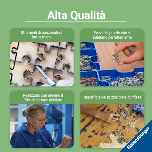 Il cartone utilizzato da Ravensburger è spesso e resistente, progettato per durare nel tempo e resistere a molteplici assemblaggi. La stampa è di altissima qualità, con colori vividi e dettagli nitidi che rendono giustizia alle bellissime immagini scelte. La varietà dei soggetti è un altro punto di forza: si spazia dai paesaggi mozzafiato alle opere d'arte, passando per mondi fantasy, soggetti a tema (come Harry Potter) e complesse illustrazioni astratte. C'è davvero un puzzle per ogni gusto.