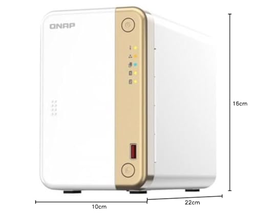 Appena tolto dalla scatola, il QNAP TS-462-4G si presenta con un design sobrio ed elegante. Il case bianco, con una finitura pulita e una striscia color oro sul frontale, lo rende un oggetto piacevole da vedere, tanto da non sfigurare in un salotto o su una scrivania. Le dimensioni sono piuttosto compatte (168 × 170 × 226 mm) considerando che può ospitare ben quattro dischi da 3,5 pollici. La costruzione è solida, con un telaio interno in metallo rivestito da una scocca in plastica di buona qualità. Sul frontale, protetti da un coperchio magnetico e bloccabile, troviamo i quattro alloggiamenti per i dischi, facilmente estraibili senza bisogno di attrezzi. Sempre sul fronte, abbiamo il pulsante di accensione, i LED di stato, una porta USB 3.2 Gen 2 (fino a 10Gbps) e il comodissimo pulsante "One-touch copy" per trasferire rapidamente i file da una chiavetta o un hard disk esterno.