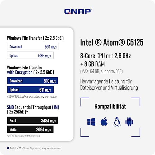 I test sul campo confermano queste ottime premesse. Con una configurazione a 10GbE, il NAS è in grado di raggiungere velocità di lettura e scrittura sequenziale molto elevate, rendendolo perfetto per il trasferimento di file di grandi dimensioni, il backup rapido e l'editing video in rete.