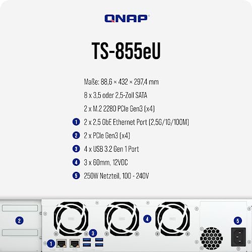 Il QNAP Turbo NAS TS-855eU-8G si presenta come una soluzione di storage di rete pensata per le piccole e medie imprese che necessitano di flessibilità e prestazioni elevate, ma che magari non dispongono di ampi spazi per i loro server. La sua caratteristica più distintiva è il design rackmount 2U a profondità ridotta. Con soli 297,4 mm di profondità, è significativamente più corto di molti altri modelli della stessa categoria, rendendolo ideale per l'installazione in armadi rack compatti, wall-mount o in ambienti con cablaggio complesso.