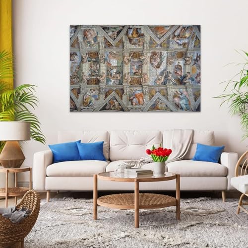 La qualità di stampa è eccezionale. I colori sono vividi e fedeli all'affresco originale di Michelangelo, permettendo di distinguere le infinite sfumature e i dettagli delle scene bibliche rappresentate. Dalla celeberrima "Creazione di Adamo" alle altre scene della Genesi, ogni sezione del puzzle è un piccolo quadro a sé, ricco di particolari da scoprire man mano che l'immagine prende forma. L'elevata definizione dell'immagine è un aiuto cruciale per orientarsi in un'opera così vasta e complessa.