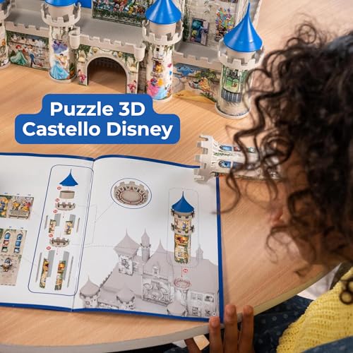 Una volta completato, il castello si rivela in tutta la sua magnificenza. Con dimensioni di circa 45 x 27 x 49 cm, diventa un pezzo da esposizione di grande impatto visivo. Ma il vero tocco di magia è un altro: sulle pareti del castello sono raffigurati oltre 100 personaggi Disney, da Topolino a Cenerentola, da Peter Pan a Simba. Questo dettaglio trasforma il puzzle in un gioco nel gioco, una caccia al tesoro per riconoscere tutti gli eroi della nostra infanzia.