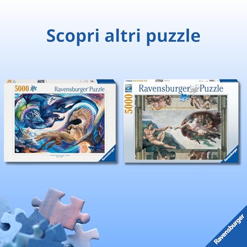 In conclusione, i puzzle Ravensburger da 5000 pezzi rappresentano il punto di riferimento nel settore per qualità e soddisfazione. La robustezza dei materiali, la precisione quasi chirurgica degli incastri garantita dalla tecnologia Softclick e la bellezza delle immagini proposte offrono un'esperienza di gioco coinvolgente e appagante. Sebbene la sfida sia impegnativa e richieda tempo e spazio, il risultato finale è un'opera d'arte che può essere incorniciata e appesa, un trofeo che testimonia la propria perseveranza. È un acquisto consigliato a tutti i veri appassionati di puzzle che cercano una sfida di alto livello e non sono disposti a scendere a compromessi sulla qualità.