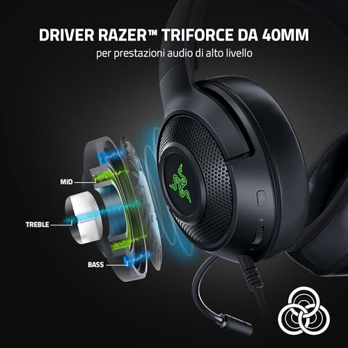 - Razer Kraken V3 X: È la versione più economica e leggera (285g). Monta driver TriForce da 40mm e offre un surround 7.1 virtuale invece del THX Spatial Audio. La qualità costruttiva è leggermente inferiore, ma rappresenta un'ottima porta d'ingresso nel mondo Razer.