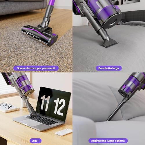 La dotazione di accessori è solitamente molto ricca (configurazione 8-in-1), includendo una bocchetta a lancia per le fessure, una spazzola per imbottiti e altri strumenti che lo trasformano in un pratico aspirabriciole. Una caratteristica interessante è la spazzola principale con design anti-groviglio, pensata appositamente per chi ha animali domestici e deve combattere quotidianamente con peli e capelli.