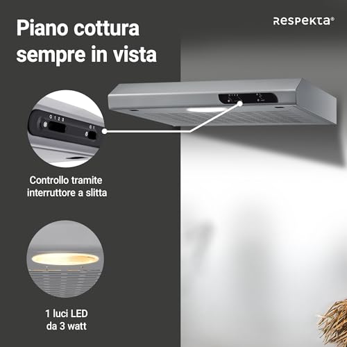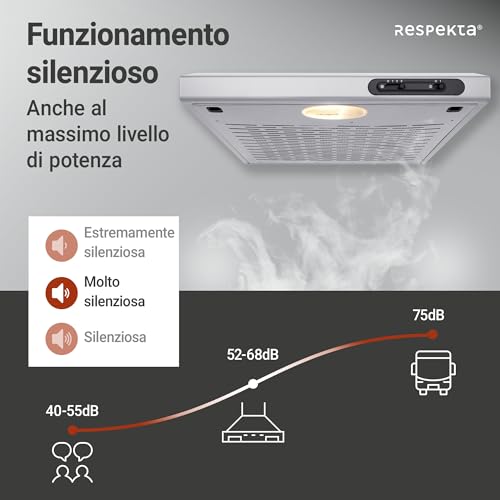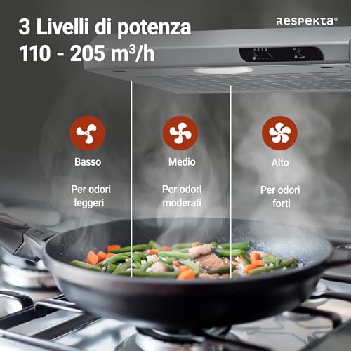 Passiamo ora al cuore della nostra analisi: come si comporta la Respekta DH540IXL nell'uso di tutti i giorni? La cappa offre tre diverse velocità di aspirazione, selezionabili tramite il già citato cursore. La capacità di aspirazione varia da un minimo di 110 m³/h a un massimo di 205 m³/h. Si tratta di valori adatti a cucine di piccole o medie dimensioni e per un utilizzo non intensivo. Se siete soliti fare fritture pesanti o cotture che generano molto vapore, potreste trovare la sua potenza al limite.