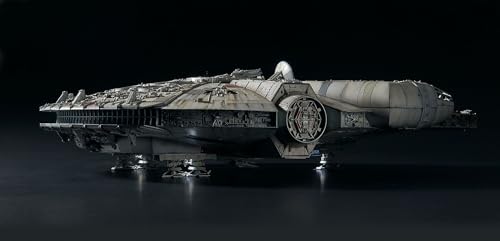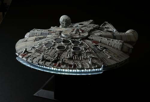 Oltre ai pezzi in plastica, la scatola contiene un'unità LED completa per illuminare motori, carrelli d'atterraggio, cabina di pilotaggio e rampa d'imbarco, un foglio di parti fotoincise per i dettagli più fini come le griglie di ventilazione, decalcomanie ad acqua di alta qualità e un solido espositore per mostrare il modello una volta completato. Sono incluse anche le figure in scala di Han, Luke, Leia, Chewbacca, Obi-Wan e C-3PO da posizionare all'interno della cabina di pilotaggio.