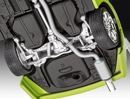 L'assemblaggio del modello Revell 07691 è un'esperienza piacevole e coinvolgente. Si parte dal motore, dettagliato e ben concepito, per poi passare agli interni. Qui, i modellisti più esigenti potrebbero voler aggiungere qualche dettaglio in più, come la moquette o una verniciatura più accurata del cruscotto, ma la base di partenza è solida. L'unione tra la parte inferiore e superiore del telaio è assicurata da una vite, una soluzione pratica che garantisce solidità.