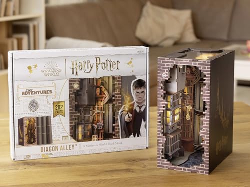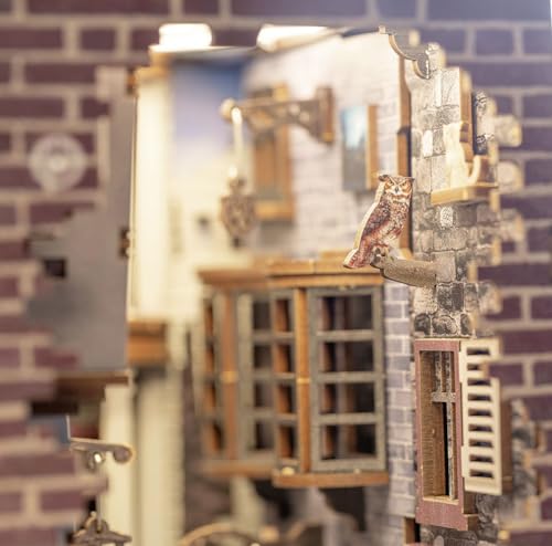 L'assemblaggio del Book Nook di Diagon Alley è un'esperienza gratificante che richiede una certa dose di pazienza e manualità, ma che sa ripagare ogni sforzo. Il sistema a incastro dei pezzi è intuitivo e ben progettato, rendendo il montaggio fluido per la maggior parte del tempo. Tuttavia, per alcuni dettagli più piccoli e delicati, è richiesto l'uso di colla per legno (non inclusa nella confezione), un passaggio necessario per garantire la stabilità e la durata del modello finito.